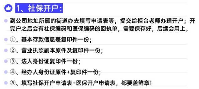 5、社保開戶應當在新公司成立的三十日內完成開戶,需要注意的是社保和醫(yī)保是兩個獨立系統(tǒng),需要分別辦理;